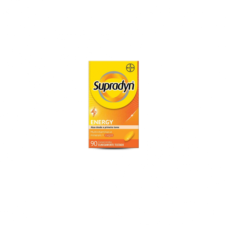 É um suplemento alimentar em comprimidos revestidos de vitaminas e minerais. Os ingredientes de Supradyn® Energy são importantes para a manutenção de várias funções importantes do organismo. Supradyn® Energy contém 13 vitaminas e 10 minerais que possuem diversas funções benéficas para o organismo. Supradyn® Energy contém vitamina C, vitamina D e Zinco, que auxiliam no funcionamento do sistema imune1. Já os micronutrientes como as vitaminas do complexo B contribuem para a produção e utilização de energia pelo organismo.