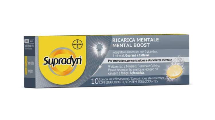 Suplemento alimentar de ação rápida, com uma tripla ação focada no aumento da concentração, atenção e energia mental. A sua fórmula específica combina 9 vitaminas, 2 minerais, extrato de sementes de guaraná (uma fonte natural de cafeína) e cafeína, para uma rápida ação estimulante que combate o cansaço e a fadiga mental. Contribui ainda para o normal funcionamento do sistema nervoso e imunitário, função cognitiva e protege as células contra as oxidações indesejáveis. A combinação de guaraná e café, ajuda na estimulação natural do organismo, para uma maior sensação de energia, vitalidade, concentração e memória. Cada comprimido contém 75mg de cafeína, que atua em sinergia com as restantes vitaminas e minerais. Adequado a partir dos 18 anos de idade. Tomar 1 comprimido efervescente por dia, de preferência durante o pequeno-almoço.