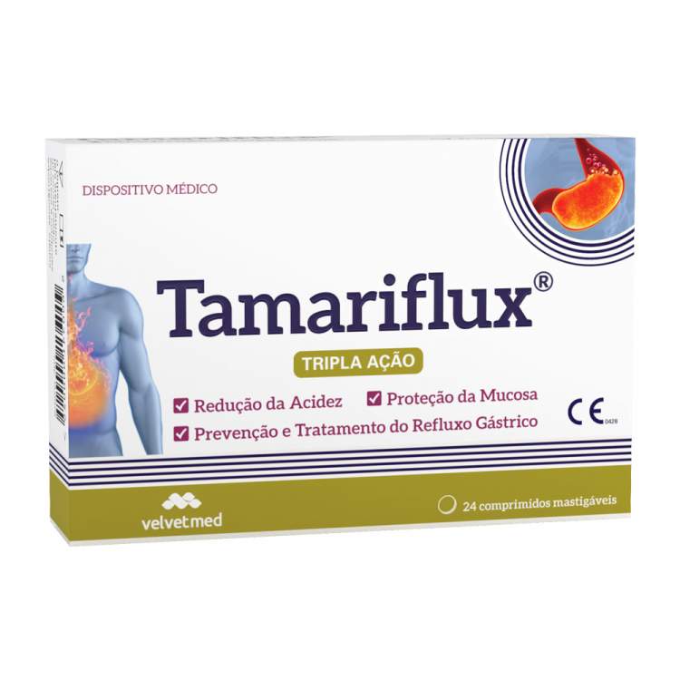 Dispositivo médico para a prevenção e tratamento do refluxo gastroesofágico e laringofaríngeo, hiperacidez gástrica, indigestão e proteção de mucosas do trato gastrointestinal. Ajuda a aliviar sintomas característicos do refluxo como a tosse irritativa e o ardor na garganta. Contém na sua composição Tamarindo, Alginato de Sódio, Carbonato de Cálcio e Bicarbonato de Potássio. A partir dos 12 anos tomar 2 comprimidos após as duas refeições principais e 2 comprimidos antes de deitar, durante pelo menos duas semanas, até ao máximo de 6 comprimidos por dia. Crianças dos 6 aos 12 anos (metade da dosagem): 1 comprimido após duas refeições principais e 1 comprimido antes de deitar.