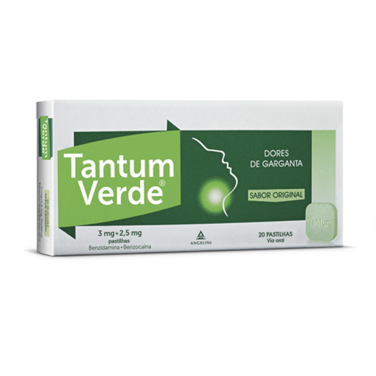 Tantum Verde pastilhas está indicado no alívio dos sintomas da dor e irritação associada à garganta inflamada. A sua composição com Cloridrato de Benzidamina 3,0 mg/pastilha e Benzocaína 2,5 mg/pastilha, com ação anti-séptica, anti-inflamatória, analgésica e anestésica, permite aliviar a dor, reduzir a inflamação e anestesiar temporariamente os tecidos inflamados. Recomendado para adultos e crianças acima dos 6 anos de idade.