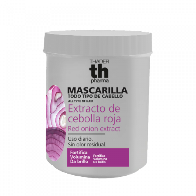 Máscara Cebola vermelha para todo o tipo de cabelo, com extrato de cebola roxa. Fórmula nutritiva e suavizante, complementar ao champô de cebola Thader TH Pharma. Potencia os efeitos do extrato de cebola, desembaraça mais facilmente o cabelo e proporciona um brilho infinito e um volume extra. De uso diário. Sem odor residual.