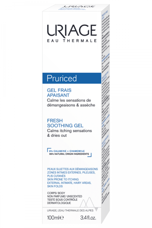 Gel fresco que ajuda a aliviar o prurido e o desconforto das zonas pilosas em risco de maceração (pregas cutâneas, zona íntima externa). A sua fórmula à base de ativos apaziguantes concentrados como a Calamina, Glicina, Camomila e o ativo patenteado PAR-2, permitem uma atuação desde a 1ª aplicação, acalmando sensação de prurido. Contém Água Termal de Uriage, Calamina, Glicina, Camomila e patenteado PAR-2. Adequado para todos os tipos de pele (recém-nascidos, bebés, crianças, adultos e seniores).