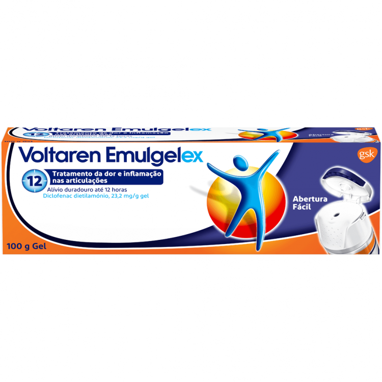 Gel para alivio da dor e da inflamação com diclofenac, um potente anti-inflamatório não esteróide (AINE), que penetra através da pele até ao local da sua dor. Voltaren Emulgelex, em comparação com Voltaren Emulgel, tem uma concentração superior de substância ativa, diclofenac, proporcionando alívio da dor nas articulações durante todo o dia, quando aplicado duas vezes por dia. Possui ainda um triplo efeito, aliviando a dor, reduzindo a inflamação, e acelerando a recuperação. O agente de permeabilidade presente em Voltaren Emulgelex permite até 3x mais penetração da substância ativa através da pele, para um alívio da dor nas articulações duradouro. O diclofenac penetra em profundidade na articulação e proporciona alívio da dor até 12 horas. Voltaren Emulgelex está disponível num tubo de fácil manuseamento com uma tampa de abertura fácil, o que é especialmente importante se sentir dores nas articulações dos dedos e mãos. Indicado para adultos e adolescentes a partir dos 14 anos, em caso de dores musculares ligeiras a moderadas, entorses, luxações, contusões ou reumatismo.