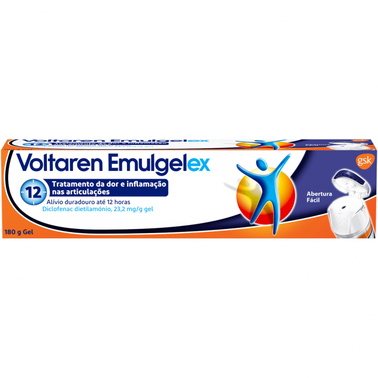 Gel para alivio da dor e da inflamação com diclofenac, um potente anti-inflamatório não esteróide (AINE), que penetra através da pele até ao local da sua dor. Voltaren Emulgelex, em comparação com Voltaren Emulgel, tem uma concentração superior de substância ativa, diclofenac, proporcionando alívio da dor nas articulações durante todo o dia, quando aplicado duas vezes por dia. Possui ainda um triplo efeito, aliviando a dor, reduzindo a inflamação, e acelerando a recuperação. O agente de permeabilidade presente em Voltaren Emulgelex permite até 3x mais penetração da substância ativa através da pele, para um alívio da dor nas articulações duradouro. O diclofenac penetra em profundidade na articulação e proporciona alívio da dor até 12 horas. Voltaren Emulgelex está disponível num tubo de fácil manuseamento com uma tampa de abertura fácil, o que é especialmente importante se sentir dores nas articulações dos dedos e mãos. Indicado para adultos e adolescentes a partir dos 14 anos, em caso de dores musculares ligeiras a moderadas, entorses, luxações, contusões ou reumatismo.