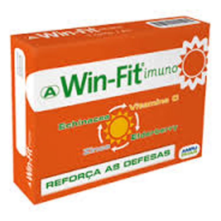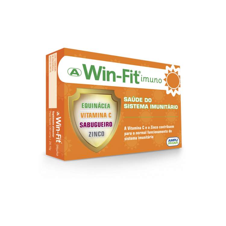 Win-Fit Imuno é um suplemento alimentar composto por Vitamina C, Zinco, Echinacea e Baga de Sabugueiro, nutrientes que contribuem para o normal funcionamento do sistema imunitário, reforçando as defesas. A echinacea é utilizada como adjuvante na terapêutica de constipações. A baga de sabugueiro, ajuda a aliviar o resfriado comum e a tosse. Win-Fit Imuno pode ser utilizado por vegetarianos.