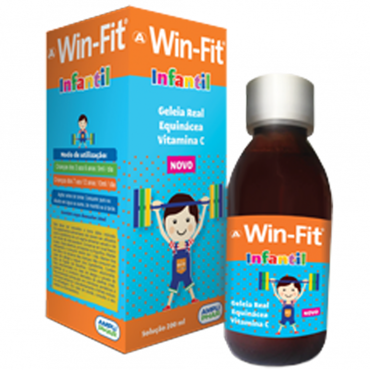 Win-fit Infantil apresenta uma fórmula completa, com geleia real, equinácea, vitamina C, entre outros, contribuindo para um saudável desenvolvimento intelectual e físico, para reforçar as defesas e como estimulante do apetite. A geleia real é um "super alimento", um estimulante natural, rico em vitaminas, minerais e aminoácidos, utilizado durante o crescimento e em situações de saúde debilitada.