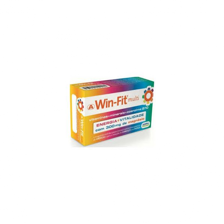 Win-Fit Multi é um multivitamínico com dosagens adequadas de vitaminas, minerais e coenzima Q10, que fornecem mais energia e resistência para combater o cansaço e a fadiga no dia a dia. Contém ainda 300mg de Magnésio para uma ação mais completa. A coenzima Q10 ajuda a retardar o envelhecimento e melhora a função cardiovascular. Indicado em caso de cansaço e fadiga, carências nutricionais, cãibras e fraqueza muscular, dietas de emagrecimento, esforço físico ou consumo de álcool e tabaco. Posologia: Tomar 1 comprimido por dia, durante ou após uma das principais refeições.