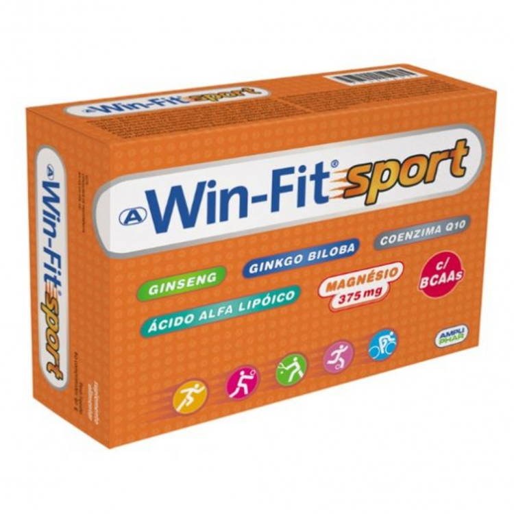 O Win-Fit sport é uma combinação única de ginseng, ginkgo biloba, magnésio, ácido alfa lipóico, co-enzima Q10, aminoácidos, vitaminas e minerais. Estes nutrientes aumentam a energia, melhoram a performance desportiva, proporcionam uma recuperação mais rápida após o treino, o aumento da massa muscular e a perda de massa gorda. Win-Fit Sport está indicado para todas as pessoas que praticam exercício físico, para aumentar a energia, melhorar a performance e para a recuperação mais rápida após o treino. Ideal como energético e revitalizante, situações de desgaste profissional, atividade física intensa e situações de fadiga. Posologia: 2 comprimidos por dia, após uma das principais refeições.