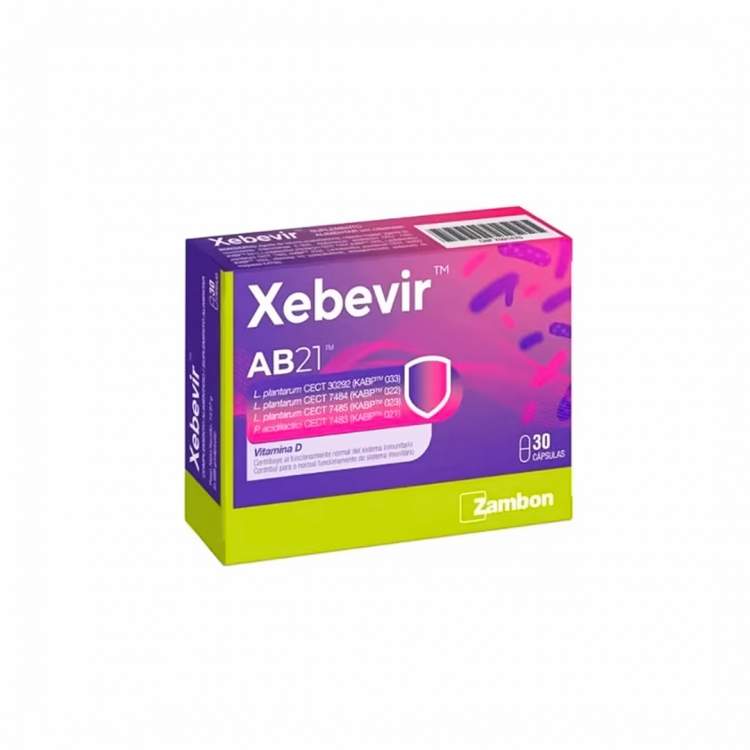 Suplemento alimentar com AB21, uma combinação patenteada e especialmente selecionada de quatro estirpes bacterianas e Vitamina D, indicado para o normal funcionamento do sistema imunitário. Cada cápsula contém Lactobacillus plantarum CECT 7484, Lactobacillus plantarum CECT 7485, Pediococcus acidilactici CECT 7483 (conteúdo mínimo do conjunto das 3 estirpes 1x109 UFC*), Lactobacillus plantarum CECT 30292 (conteúdo mínimo 1x109 UFC*) e 10 µg de Vitamina D, equivalente a 400 U.I. (200% de VRN – Valor de Referência de Nutriente). Tomar 1 cápsula por dia, após a refeição, durante um mínimo de 4 semanas. Não indicado para menores de 3 anos.
